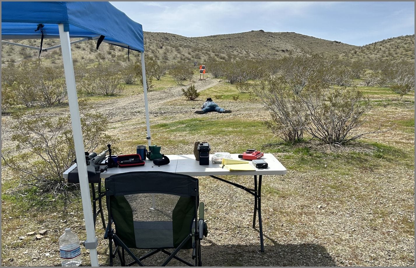 The truck drove to the end of the range, parked and 3 people and 2 dogs got out. People I can manage but dogs are fast and unpredictable especially in low brush which hides their movements. So we both switched from rifles to sidearms and grabbed some optics.