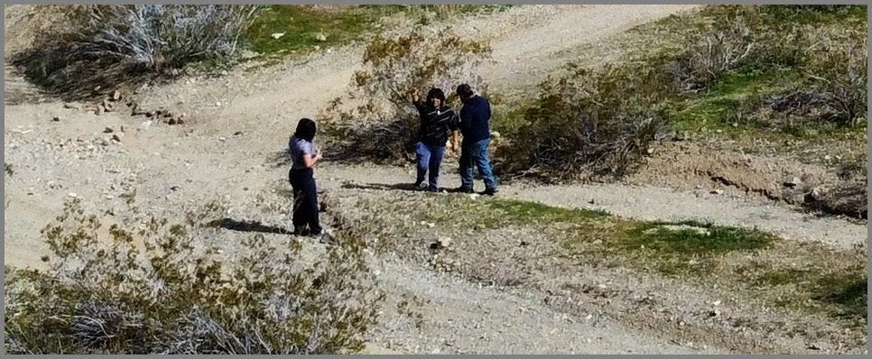 These people were just milling about while we were on high alert. A few minutes into this bizarre encounter a woman from the truck walked up to the 100 yard target to inspect it. “It’s like she is curious about something she’s never seen!” my buddy exclaimed. I was puzzled. This area of the desert is well known for weekend shooters so its not like we were doing something unique. But we were still in an information blackout due to the brush concealing their movements.